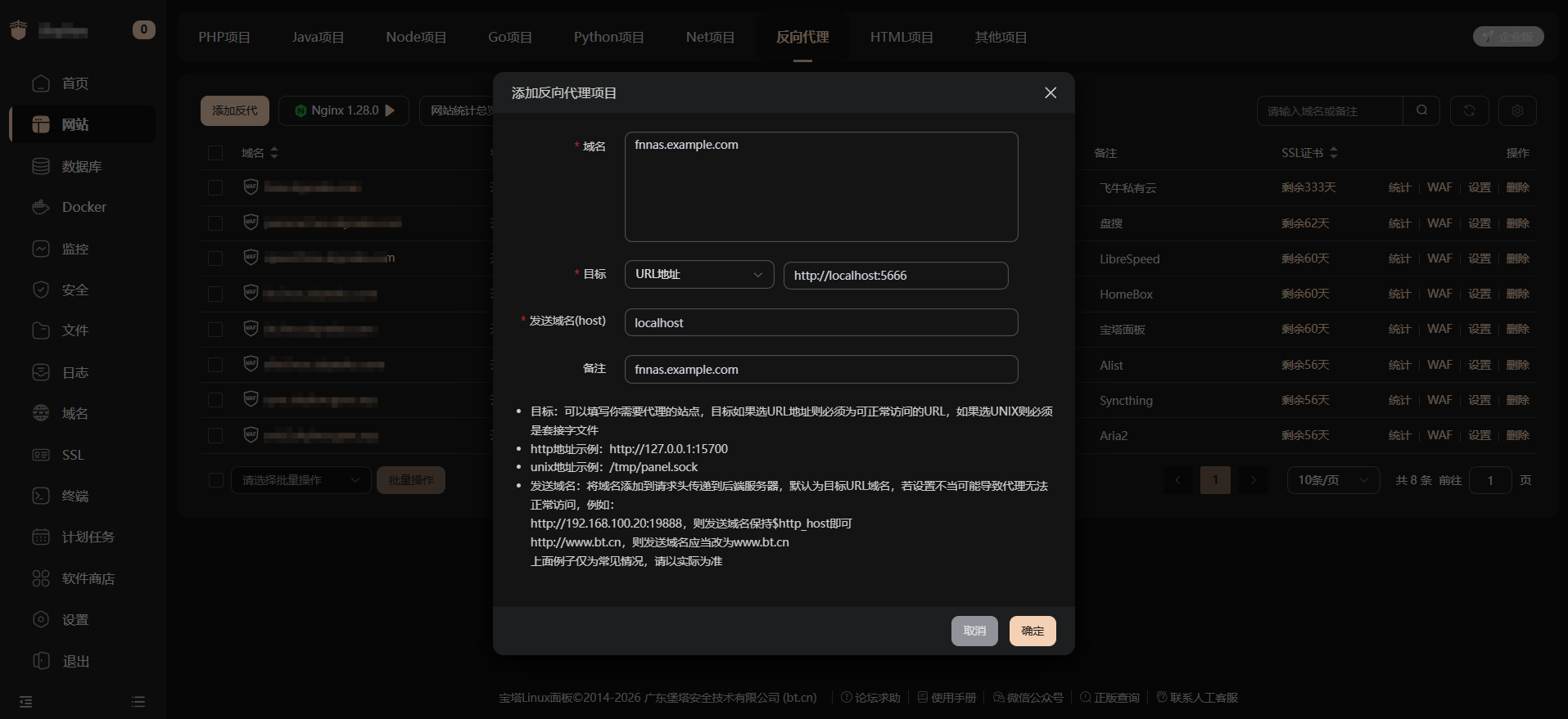 本文介绍如何在飞牛NAS上结合宝塔面板,通过反向代理的方式,实现无需在域名中暴露端口号,直接使用域名访问NAS。 --- 一、为什么要使用反向代理免端口访问? 很多NAS服务在默认情况下,访问方式通常是: http://[ip地址/域名]:5666 https://[ip地址/域名]:5677 这种方式存在几个明显问题: ❌不美观、不专业 ❌需要记端口号,使用成本高 ❌端口暴露在公网,安全性较差 通过宝塔反向代理,可以实现: https://fnnas.yourdomain....